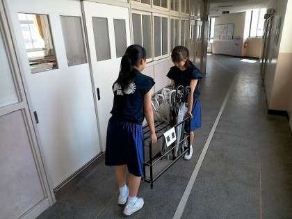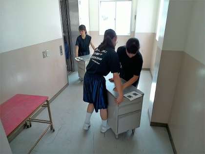 夏休み期間中のエアコン設置工事に伴い、先日から教材室の引越しを行っています。