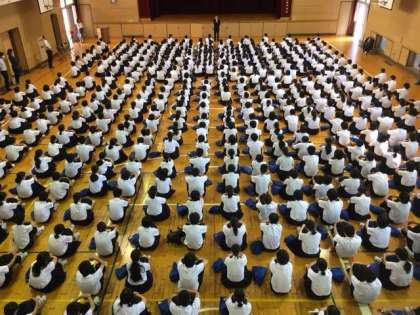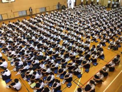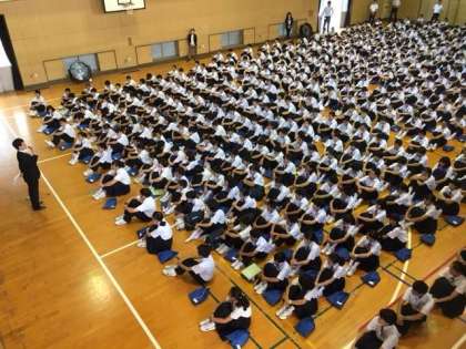 梅雨もあけ真夏日和の平成29年度1学期終業式が始まりました。体育館では1学期初めに取り組んだ集団行動の成果が見られる整列ができています。集団行動は「他者を意識して心と体を整えること」により充実していきます。今日の終業式は、その充実が見られる整列ができています。