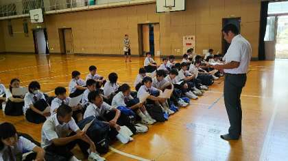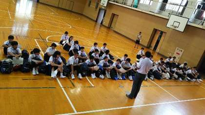 全学年の体育委員と生徒会、各クラスより選出された実行委員の総勢49人が集まり、結成式を行いました。