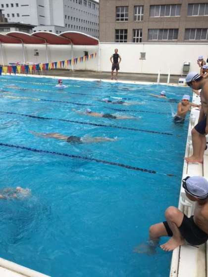 今日は13:00から54名の生徒が出席をして水泳の補習を実施しました。クロールと平泳ぎにグループ分けして展開しました。出席した生徒たちは真剣に説明を聞いて、繰り返し繰り返し25mを泳ぎきることにチャレンジしていました。夏休みは、今日の経験を元に安全で楽しい水場での思い出をつくってください。