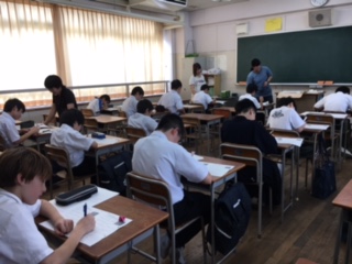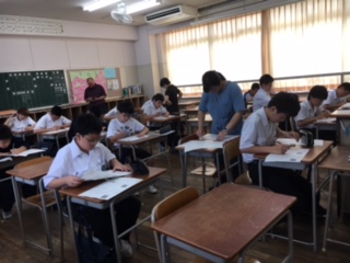 1年生夏期学習会の2日目がスタートしました。本日も多くの先生に来ていただいてレベルアップを目指して課題に取り組んでいます。1限目は英語の時間です。