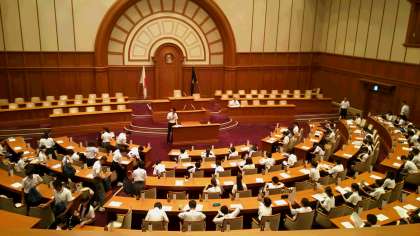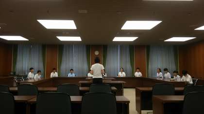 大阪市役所にて、子ども市会の「子ども議員」に選ばれたメンバーが集まり、意見交流会に参加しています。