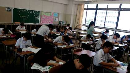2限目の英語の学習会の様子です。3日目となれば出される課題のレベルも少し高くなり質問も増えています。
