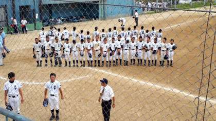 昨日に引き続き、大塚運動公園において、野球部が5回戦に挑みました。対戦相手は、これまで何度も対戦してきた西中学校でした。まさに宿命の東西対決です。初回、西中の猛攻にあい、4点を入れられ流れが一変。これまでの東中のいいリズムが消え、エラーや凡プレイが出たり、攻撃では、ランナーを出しながらも、タイムリーが出ず、最後まで西中ペースの試合運びとなりました。最終回も粘りを見せましたが、西中の堅守に阻まれ、得点てきず結局、0対6の大差をつけられた試合となりました。とても悔しい試合になりましたが、3年生は最後まで声を出して、まとまって、あきらめないプレーは素晴らしいです!東中野球部らしさを発揮してくれました。3年生は、この大会を最後に引退となりますが、1、2年生が、後を受け継いでくれると思います。「誇りを胸に受け継げ!東中野球部!!」