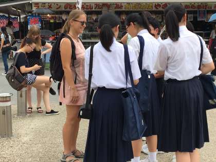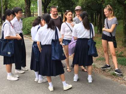 いろいろな国から多くの外国人が大阪城を訪れています。