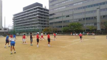 先日のブロック大会の優勝の勢いのまま明日、頑張れ!ソフトテニス部!