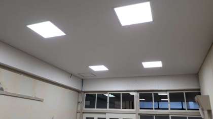 校長室のリフレッシュ工事が進んでいます。天井には明るいLED灯、新しい流し台も設置されました。本棚等も復元し、まもなく完成です!