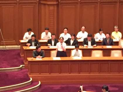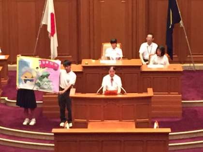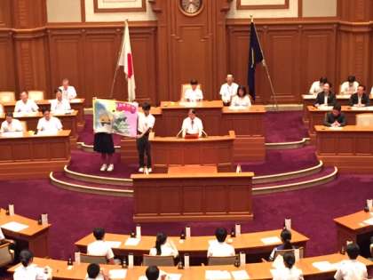 続いて第4委員会の代表として東中の生徒が「国内外からより多くの観光客が訪れる「国際観光都市・大阪」を実現するための取組について」質問発表を行いました。