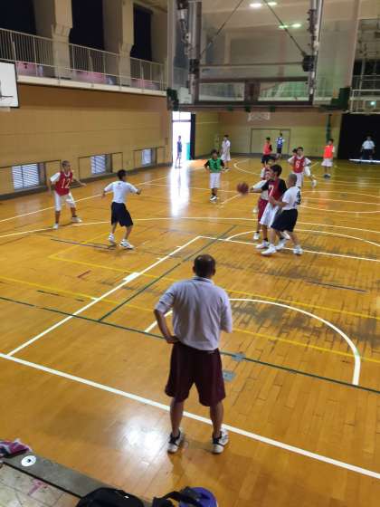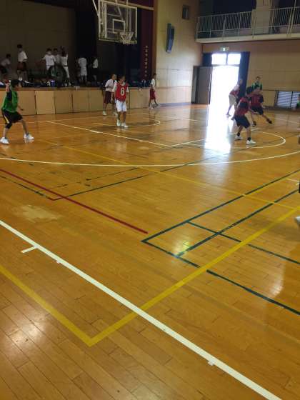 本日は東中学校にて男子バスケットボールの3B選抜チームの練習が行われています。他のブロックとの試合に向けて監督の山田先生(東中)のもと練習に熱が入っています。