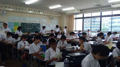 ※写真は1・2組の提出物回収の様子です。