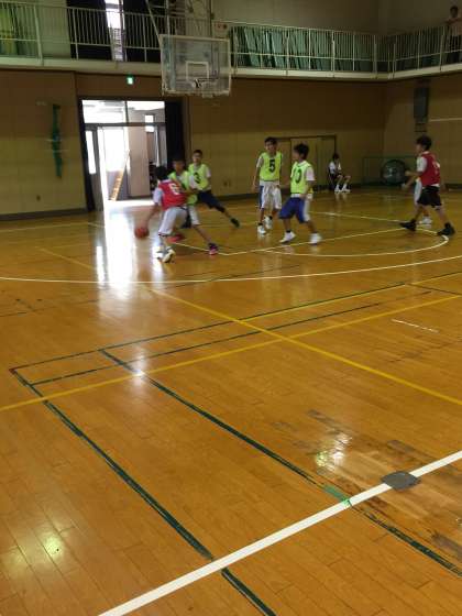 来週に秋季大会を控えたバスケットボール部は今日と明日練習試合です。今日は市岡中学校とさせていただいています。最終調整の段階で皆よく集中しています。