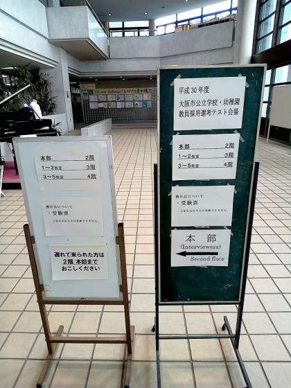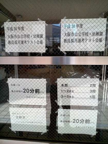 本日東中学校にて、平成30年度大阪市公立学校・幼稚園教員採用選考テストが行われています。