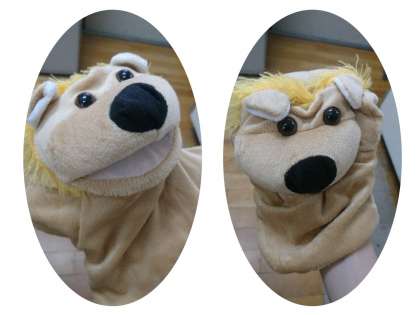 授業のなかではハンドパペットも仲間入り。和やかな雰囲気で、話し方も含めて学習しました。