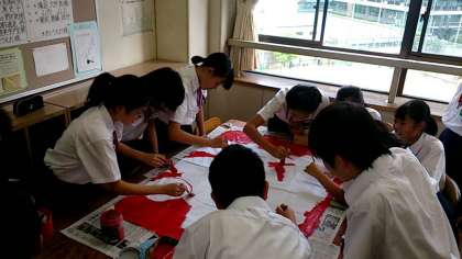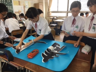 4組では応援グッズ担当、スローガン担当と、役割分担をして取り組んでいました。5組は早くも学級旗の色づけに入っていました。各クラス協力して、頑張っています!