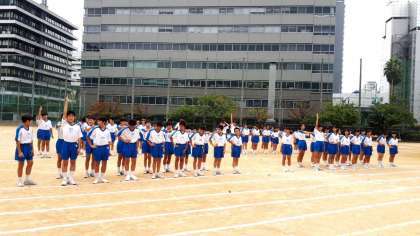 2時限目の1年生の体育科の授業では、体育大会の行進の練習に力が入っています!