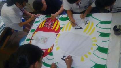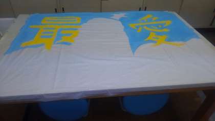 放課後に残って学級旗の色塗りを頑張っています!各学級の現状です。