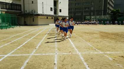 2年3・4組の体育授業では、体育大会の位置取り練習に取り組みました。