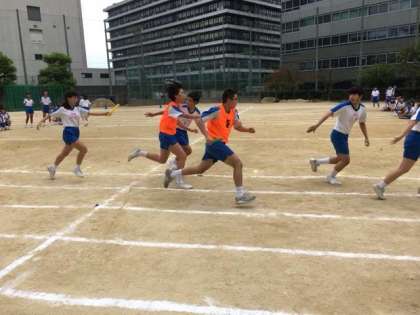 今日の2時間目は3クラス合同の体育を行い体育大会学年種目の「全員リレー」を初めて実施しました。かなりの盛り上がりで、どのクラスも勝負にとことんこだわるレース展開になりました。今日の結果は1位2組、2位1組、3位5組でした。見応えがありますので、お楽しみに!