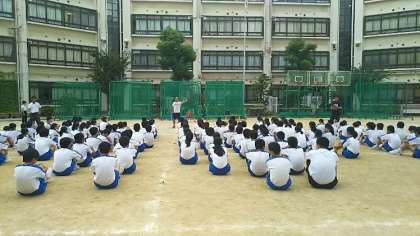 今週と来週、体育大会に向けての学年練習があります。今日は入場行進と学年種目の練習です。少し天気が気になりますが、先生の話をしっかり聞いて、協力して頑張りましょう。