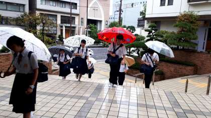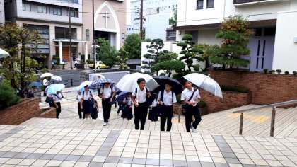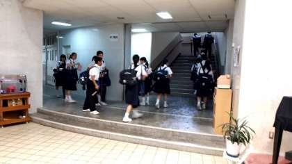 あいにくの雨、東中生が登校しています。今日の体育大会の練習メニューが変更されますが、どんな状況でも気持ちを切らさずに頑張ろう!