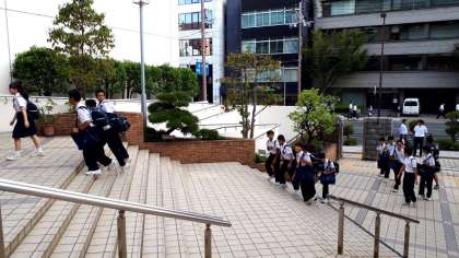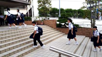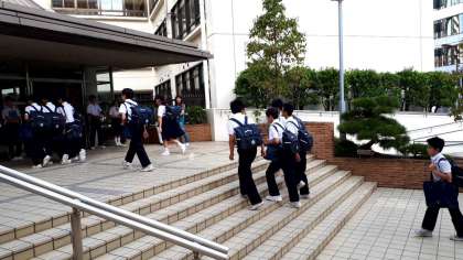 今朝は晴れ間が広がり、さわやかな朝となりました。東中生が登校してきました!