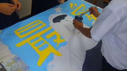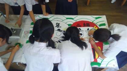 本日6限目は、体育大会の応援の取り組みを行いました。いよいよ応援旗も完成です!