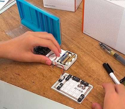 今日は、できるだけLEDが明るく光るような回路を組むという課題が示されていました。