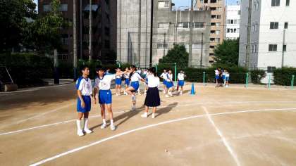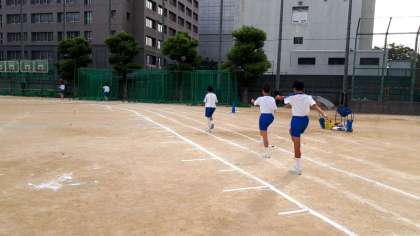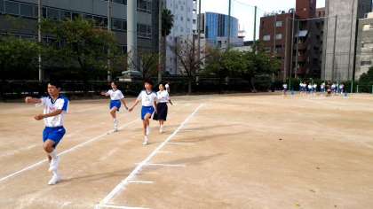 台風が接近してきていますが、今朝はまだいい天気です。体育大会実行委員の皆さんは、行進の先導役としての練習に入っています。毎朝の活動、本当に頑張っています!!