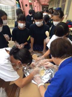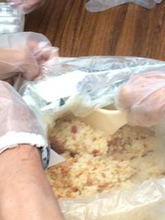 地域の方々に教えていただきながら、しっかり混ぜてます!
