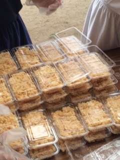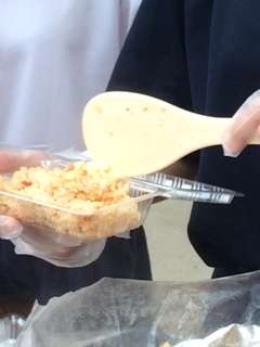 練習で培ったチームワークを活かして、女子バスケットボール部員が手際よく作業しています。