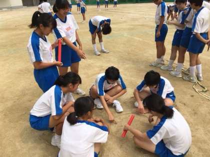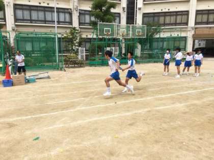 4時間目に3年3.4組みの体育の授業では体育大会の個人種目の練習をしました。さすが3年生です。記録にこだわり練習後にミーティングをする姿も見られます。かなり上達してきました。今日は午後から3年生の学年練習です!