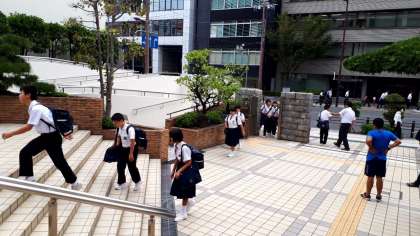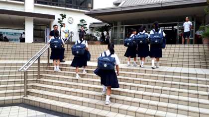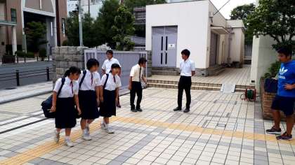 東中生が登校してきました。今日は曇り空で、蒸し蒸ししていますが、頑張ろう!