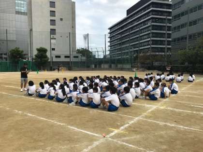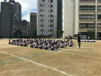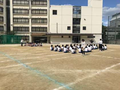 1年生の2回目の学年練習です。個人で出場する競技の集合や内容を確認しています。