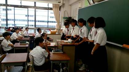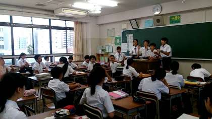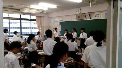 朝の実行委員会、応援団長副団長の練習に続き1年生は各クラスでも体育大会の応援練習に取り組んでいます。楽しい大きな声が5階フロアに響いています!