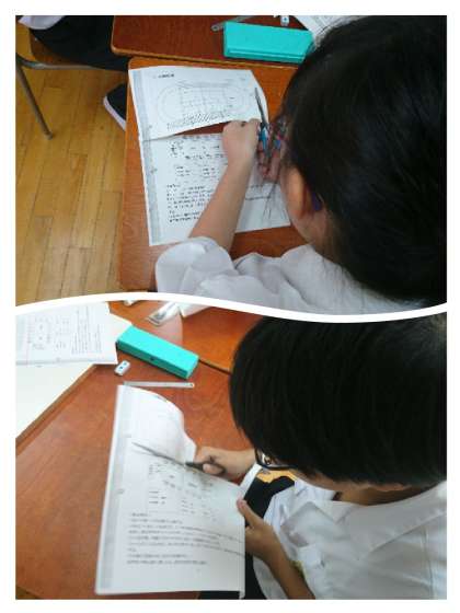 出場する種目はそれぞれ異なります。出場種目に関するプリントを、間違いのないように選んで、必要な部分をハサミで切り取ります。