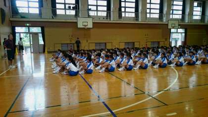練習に先立ち、山田先生からのお話です。練習の時間を重ねる中で、学級や学年の課題も見えてきました。仲間が一丸となっているか、互いに支え合って前に向かっているか、本当の団結の意味を考えます。