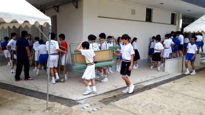 各係に分かれて会場準備が一斉に始まりました。すごい速いペースで準備が進んでいます!何事にも無駄なく、全力です。