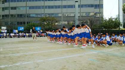 体育授業、朝練で一生懸命取り組んできました。集団行動もしっかりしています!