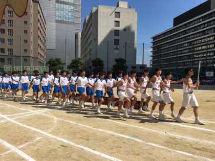 部活動行進です。男女バスケットボール部、バレーボール部です。