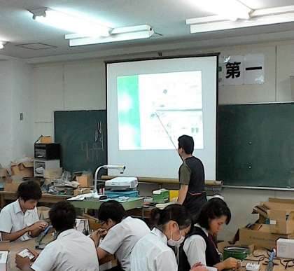 2限目の技術室では、3年5組がラジオの製作に取り組んでいました。