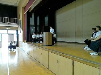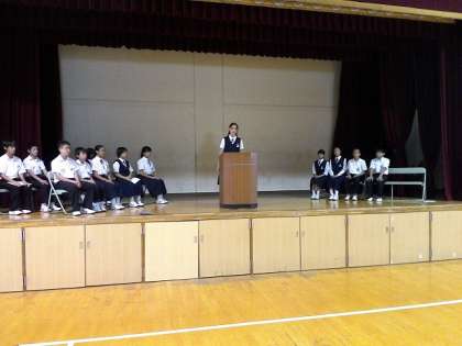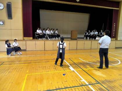 今日の昼休み、体育館では立会演説会のリハーサルが行われました。