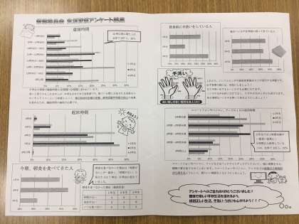 本日の昼食時、先月実施した生活習慣アンケートの結果を保健委員が放送しました。