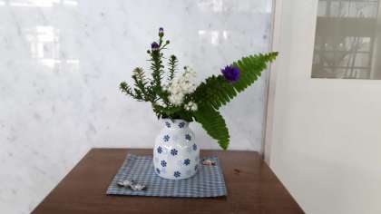 秋の深まりを感じる花花が、事務室、職員室前に生けられています!東中生は、中間テストに向けて頑張っています。