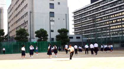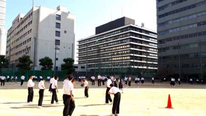 夏のような太陽の光が差し、気温がぐんぐん上がり暑い昼休みの運動場! 東中生の元気な声が響いています!!