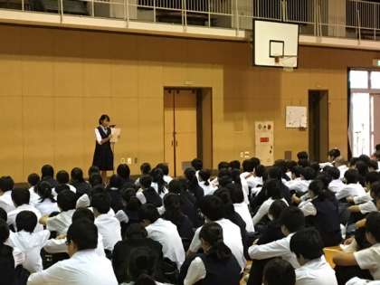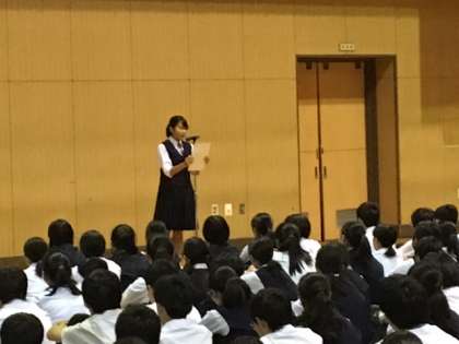 部長会議代表(バレーボール部部長)からのメッセージと、部活動の注意事項がソフトテニス部部長から伝えられました。