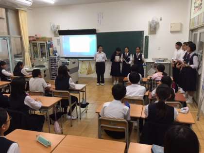 後期生徒会最初の仕事として、小学校を訪問し、来年入学して来る6年生に東中学校の紹介をしに行きました。