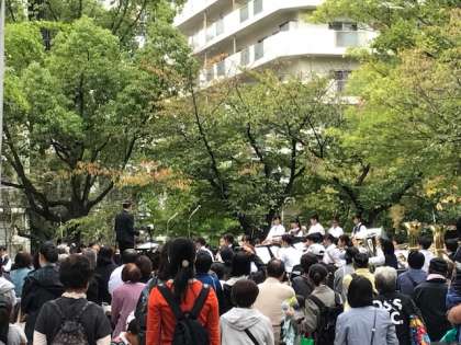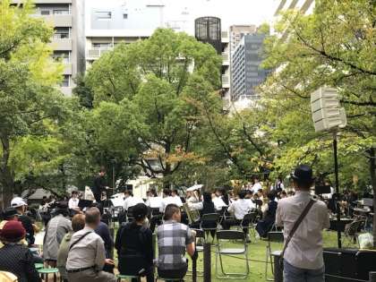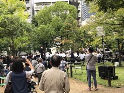 本日、吹奏楽部は北大江公園にて行われています、北大江たそがれコンサートに出演しています。雨が少し降ったり止んだりという中ですが、たくさんの方々に聴いていただくことができました。