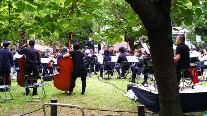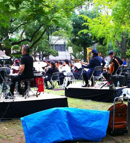 自分たちの出番の後は、北大江オーケストラです。ホルンとクラリネットが一人ずつ参加させていただいています。