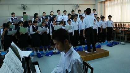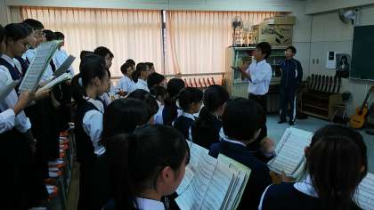 6限 第2音楽室では、2年3組の合唱練習が行われています。