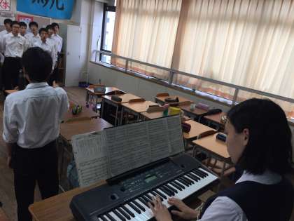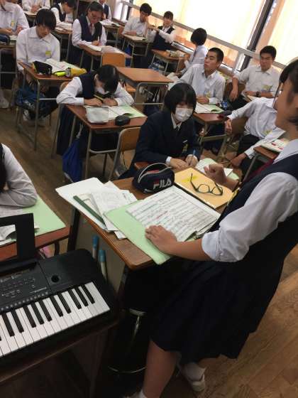 3年生の教室の風景です。音楽に詳しい生徒が作戦を指揮しているクラスもありました。もはや先生ですね。